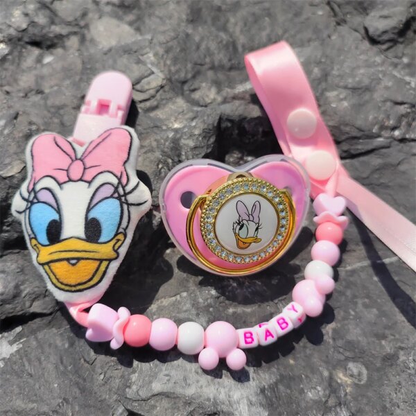 Kawaii الوردي 6 سنتيمتر ديزي بطة أفخم حلية دمية الحلمة سلسلة واللهايات ديزني شخصية مع اسم الإنجليزية دمية المهديء ,