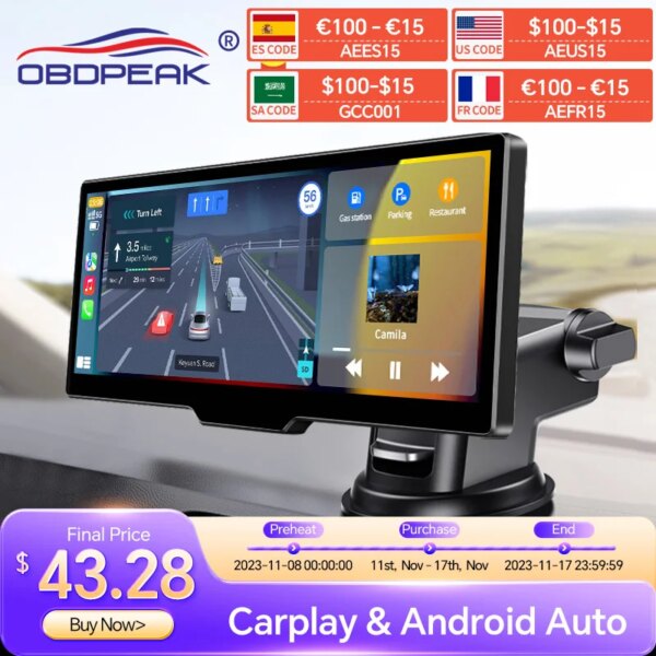 OBDPEAK-T20 10.26 “داش كام كاميرا الرؤية الخلفية ، كاربلاي أندرويد ، مشغل السيارات الذكية ، نظام تحديد المواقع والملاحة ، سيارة DVR ، مرآة FM رصد ,